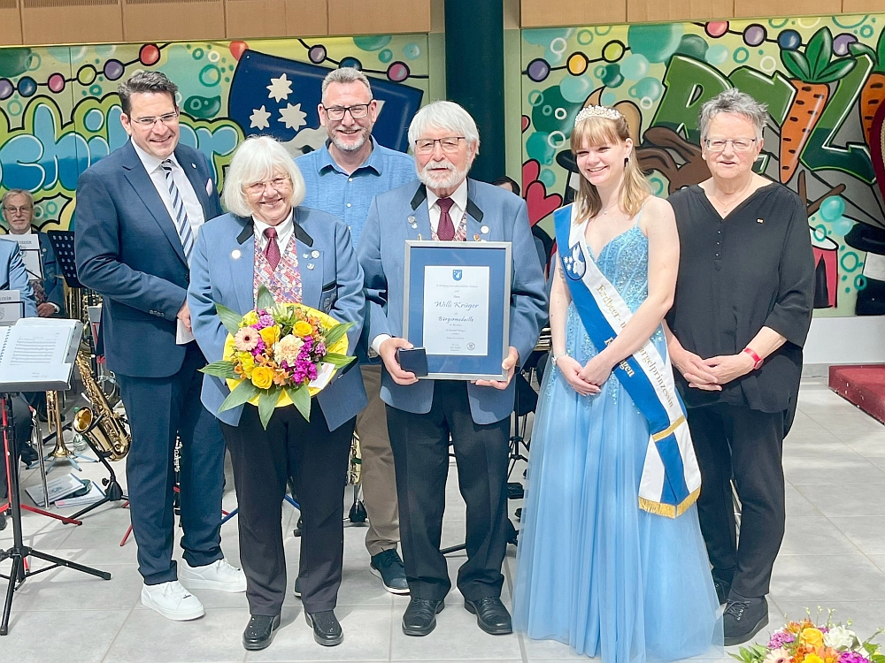 Mit großer Wertschätzung und spürbarer Herzlichkeit wurde unser Posaunist Willi Krüger anlässlich der Ehrungsmatinee der Gemeinde Reilingen mit der Bürgermedaille in Bronze durch Bürgermeister Stefan Weisbrod geehrt. In einer bewegenden Laudatio würdigte die Ehrenvorsitzende der Kultur- und Sportgemeinschaft - KuSg - Sabine Petzold nicht nur sein außergewöhnliches Engagement, sondern vor allem den Menschen Willi Krüger hinter den vielen Jahrzehnten ehrenamtlicher Arbeit. Immer mit Blick darauf, wie aus Willi Krüger - in Altlußheim geboren - ein Reilinger Original geworden ist. Seit mehr als 50 Jahren ist er eine feste Größe im Musikverein Harmonie. Immer ein verlässlicher Mitstreiter, ob im Vorstand, bei der Planung von Ausflügen oder vielen anderen Tätigkeiten zum Wohl des Vereines. Auch über die Gemeinde hinaus hat er Spuren hinterlassen: als "Herold der Wersau", als Reilinger Nikolaus und als Botschafter seiner Heimat hat er vor Staatsgästen brilliert. Die Freunde Reilinger Geschichte, der Arbeitskreis Burg Wersau als auch der Förderverein Wersau sind ebenfalls sehr stolz auf ihren "Willi", der oftmals als Erster da ist und am Ende das "Licht ausmacht". Dabei steht ihm seit Jahrzehnten seine Frau Karin zur Seite, die ihn auf seinem Weg begleitet und unterstützt. Über fünfundfünfzig Jahre sind sie inzwischen gemeinsam musikalisch mit dem Musikverein Harmonie unterwegs, spielen zudem auch noch im Fanfarenzug Hockenheim. Die Auszeichnung mit der Bürgermedaille ist mehr als eine Ehrung - sie ist ein herzliches Dankeschön an einen Menschen, der mit Leidenschaft, Humor und großer Hingabe das Leben in Reilingen bereichert und mitgestaltet. Sabine Petzold brachte es in ihrer Laudatio final auf den Punkt: Reilingen wäre ohne Willi Krüger wie eine Posaune ohne Mundstück - es würde einfach etwas Entscheidendes fehlen. |