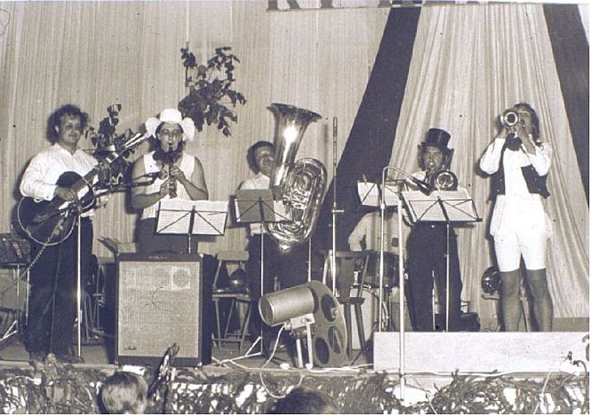 Schallplattenaufnahme mit dem Karnevalverein "Rheinauer Sandhase". Auf der "A-Seite" der Platte war "Adele, Adele" und auf der "B-Seite" war "Heute geh'n wir nicht nach Haus" zu hören. Die Platte war zwar, was niemand wundert, nie in den Charts, aber für die Kapelle war es eine interessante Erfahrung, in einem Tonstudio eine Aufnahme zu machen. | ||